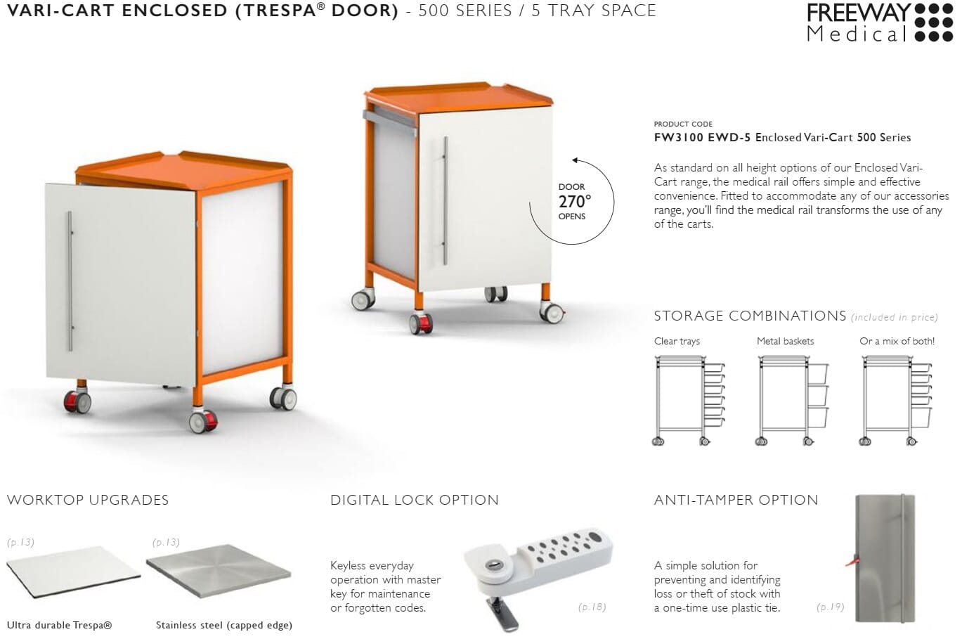 Freeway Vari – Cart Enclosed With SOLID TREPSA Door and Rear Panel 540(w) x 540(d) x 800(h)mm. Complete with: