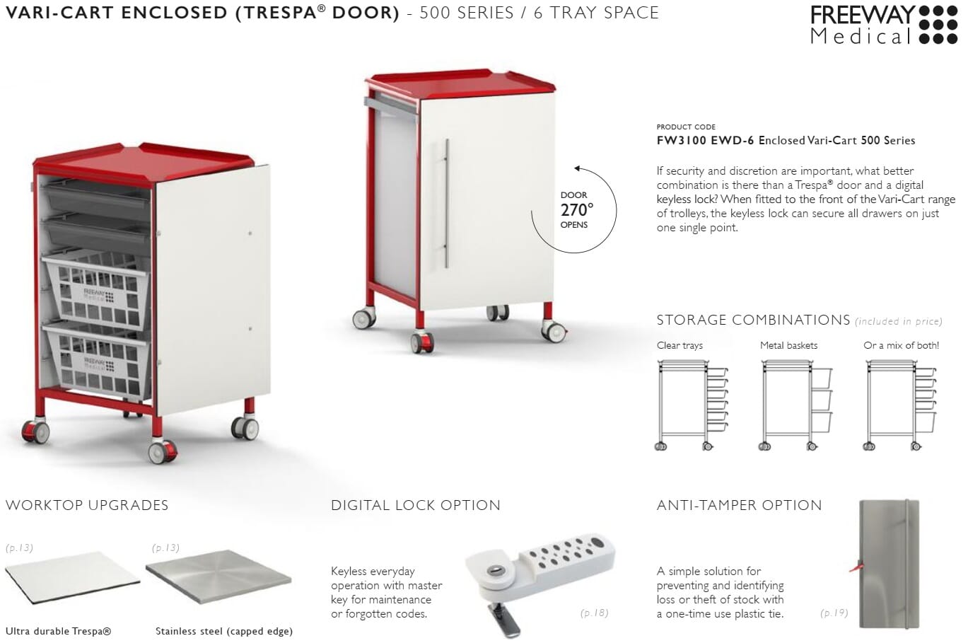 Freeway Enclosed Vari – Cart With SOLID WHITE TRESPA Door & Rear panel 540(w) x 540(d) x 920(h)mm. Complete with: