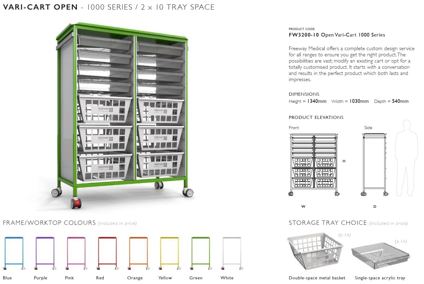 Freeway Vari - Cart 1000(w) x 480(d) x 1340(h)mm. Complete with: