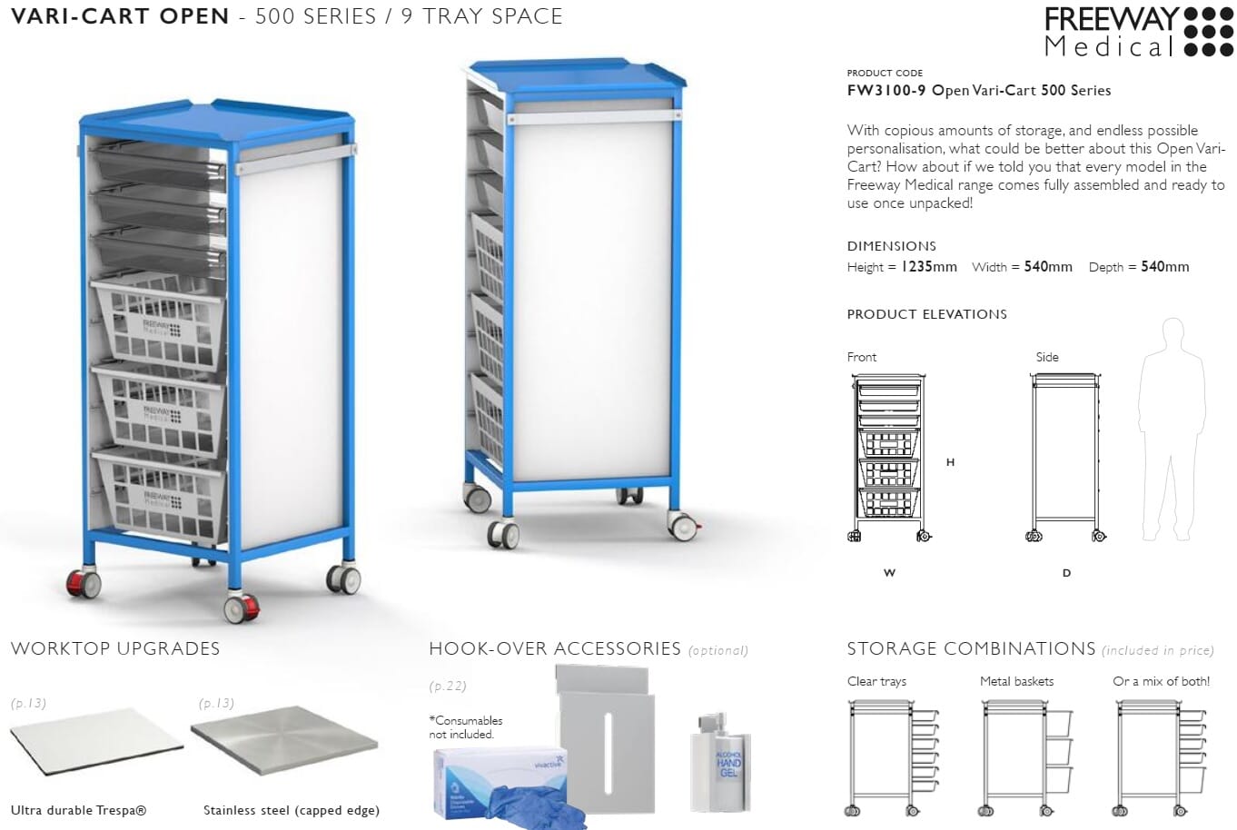 Freeway Vari - Cart 540(w) x 540(d) x 1260(h)mm. Complete with:
